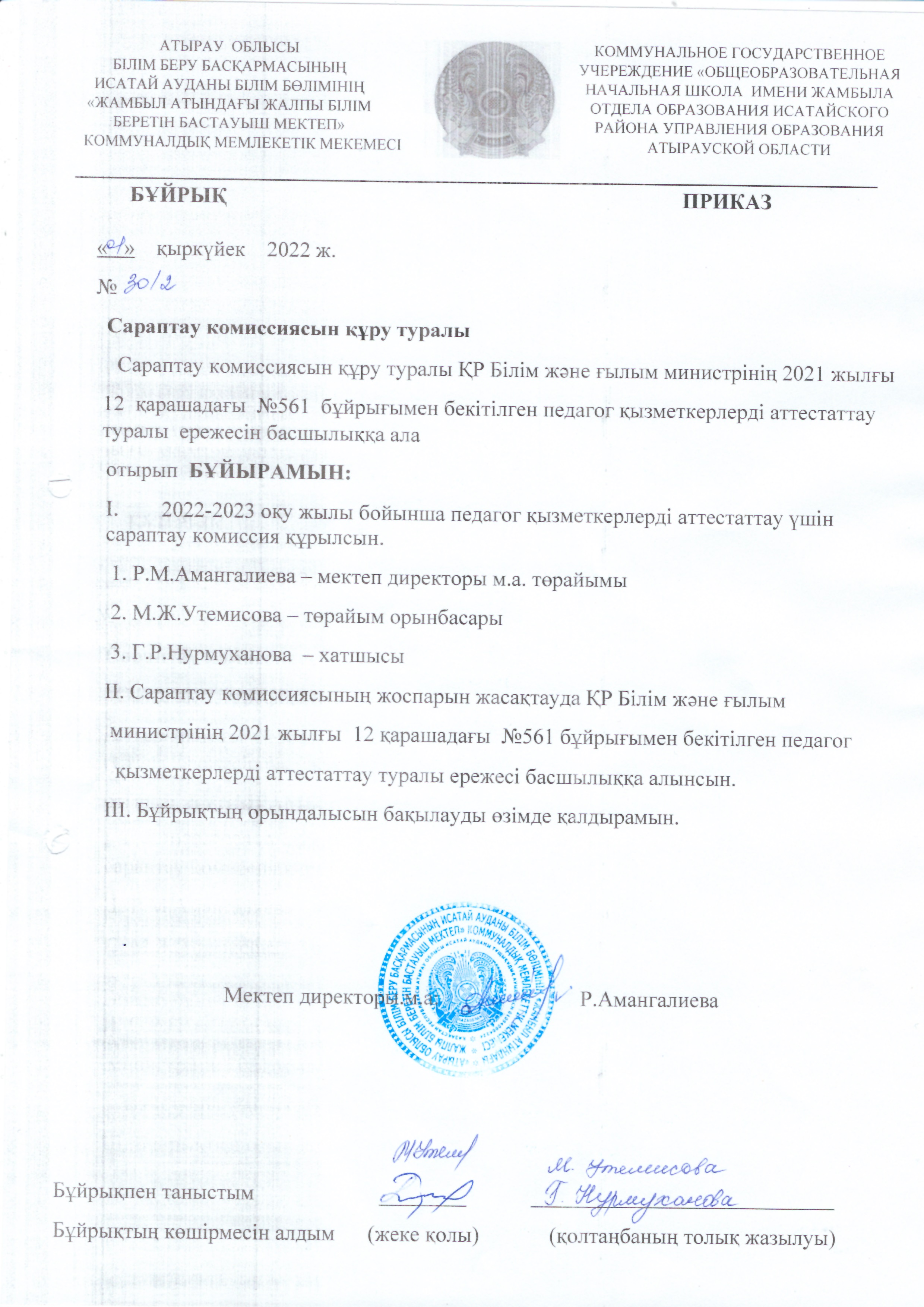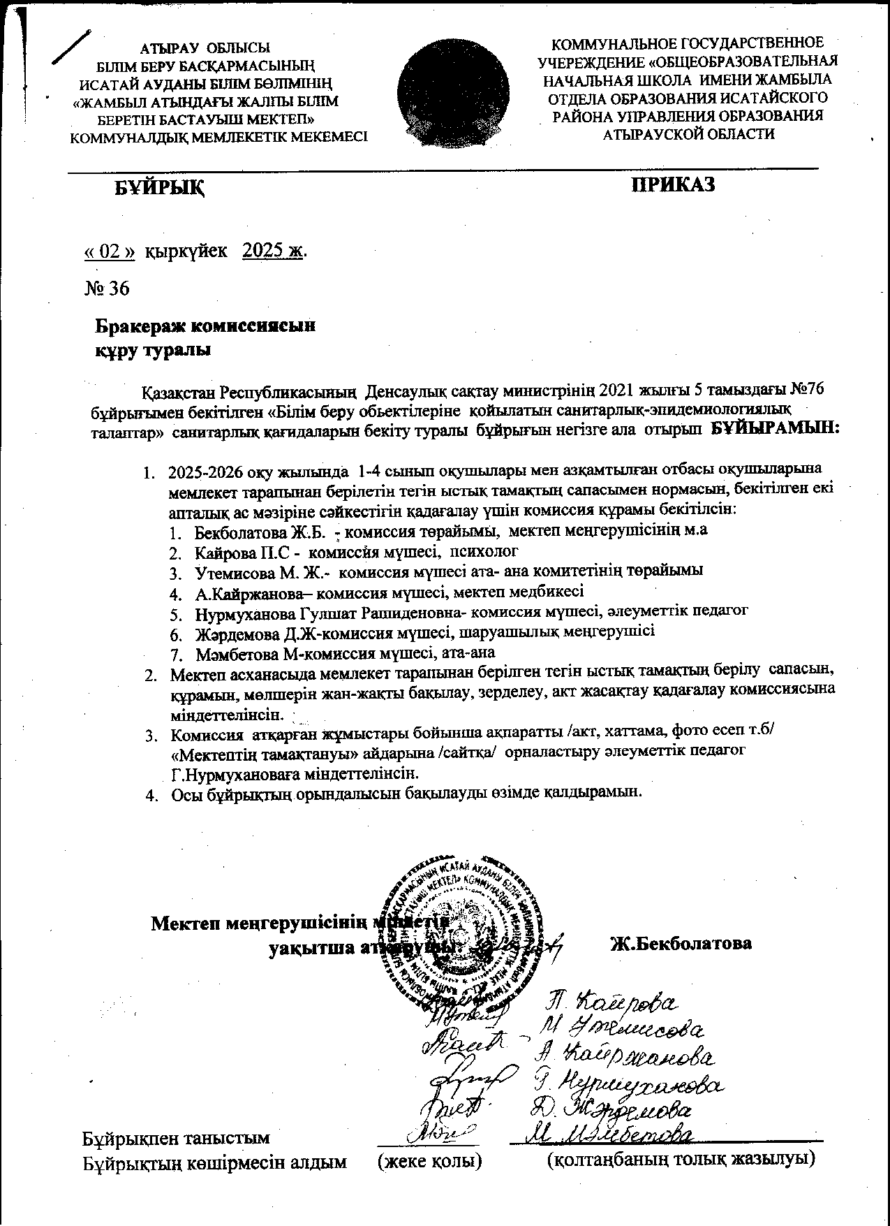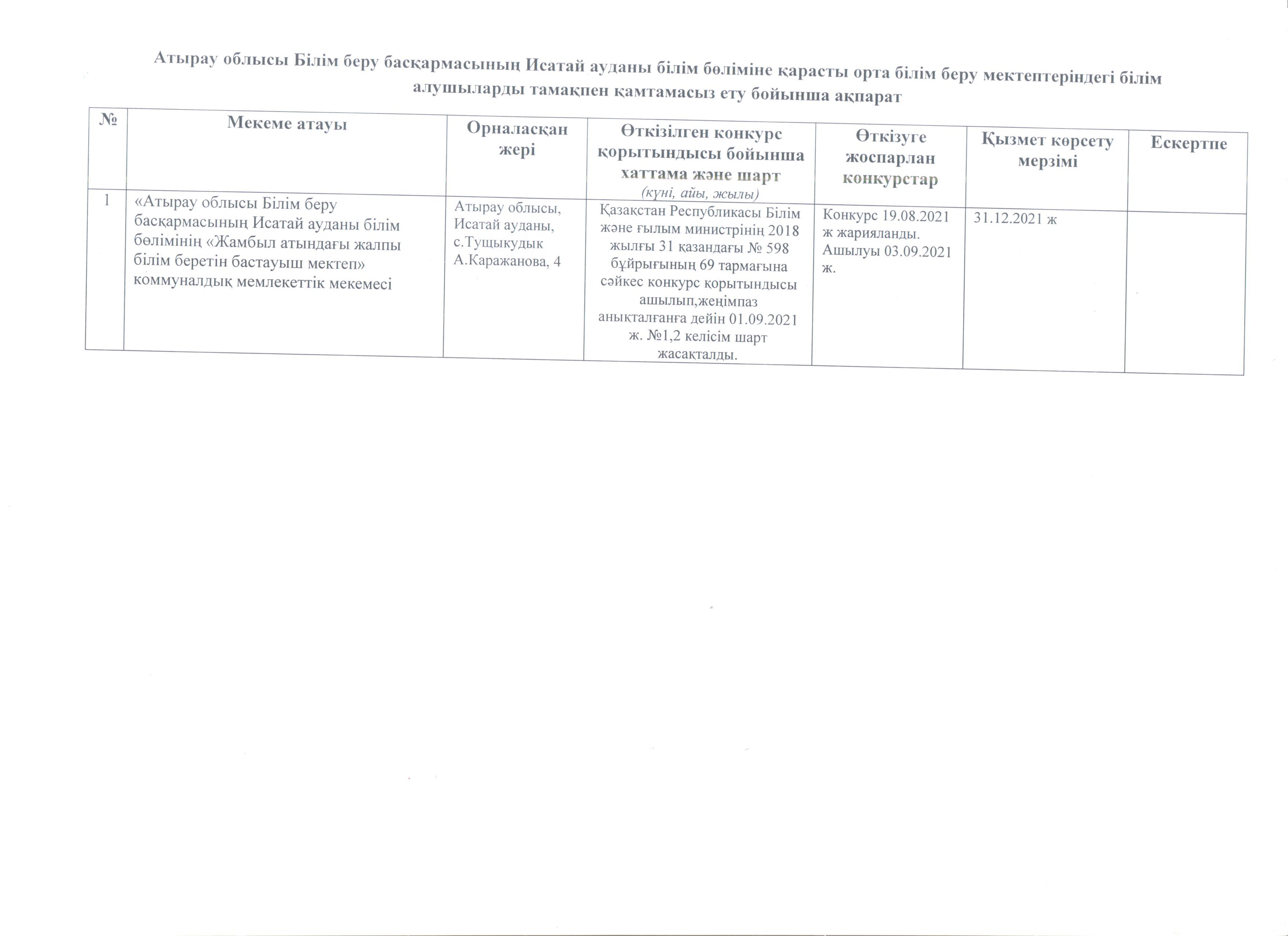 «Жамбыл атындағы жалпы білім беретін бастауыш мектеп» мемлекеттік мекемесі