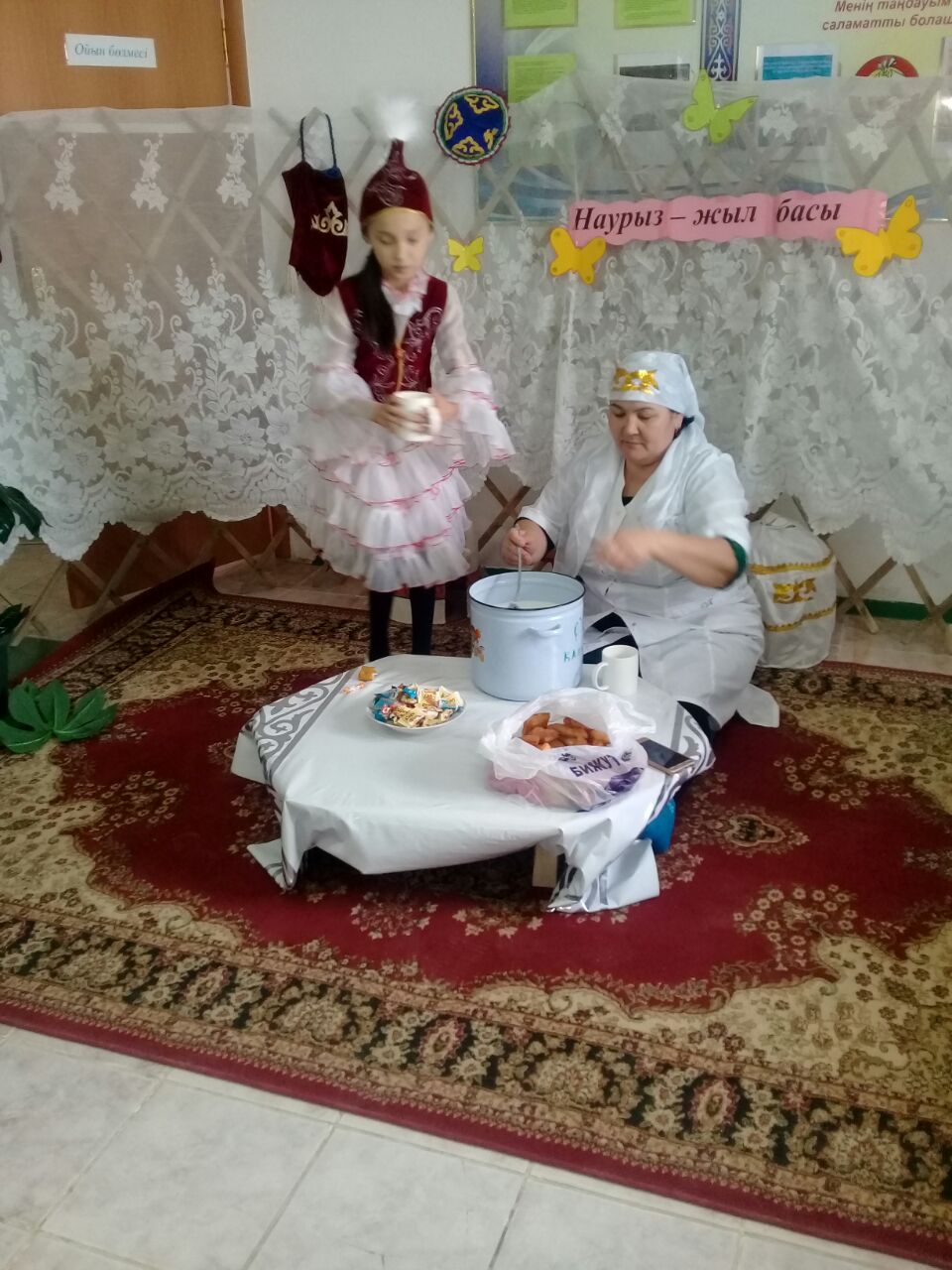 Бұл тәрбие сағатында балаларға 8-наурыз туралы түсінік беріп, анаға деген бала махаббатын ояту. Жанұядағы ана мен бала арасындағы қарым-қатынасты нығайту. Балаларды мейірімділікке, аналарының еңбегін бағалай білуге, анасын сүю арқылы еліне деген сүіспеншілікке тәрбиелеу жөнінде айтылып өтті. Шараға әжелер, аналар қатынасып балаларының өнерлерін тамашалап жақсы тілектерін айтып, баталарын берді. «Ұлттық тәрбие» бағыты бойынша «Наурыз –Ұлыстың ұлы күні» атты апталық жоспары жасақталып бекітілді. Жыл сайын елімізде мемлекеттік мереке Наурыз мейрамы тойланады. Наурыз мейрамы –көктемгі күн мен түн теңесетін күнге сай келетін көне мереке сондай-ақ табиғат жаңаруының нышаны болып келеді. Сыныптар арасында «Қош келдің әз наурыз!», «Наурыз-құт, береке!», «Армысың – Әз Наурыз!», «Наурыз –жыл басы», « Наурыз берекем, наурыз мерекем!», атты тәрбие сағаттары өтіп 20 наурыз күні ата-анамен бірлескен мектепішілік«Наурыз –Ұлыстың ұлы күні» атты ашық тәрбие шарасы болып өтті, бұл шарада әр сынып рухани жаңғыру аясында салт-дәстүрге байланысты Жарапазан, Шашу шашу, Бесікке салу, Тұсаукесу, Құлақ тесу, Аша майға отырғызу сияқты көріністер көрсетілді. Шара соңы сазды бағдарламаға ұласып оқушылар «Наурыз Көктем» , «Туған жер», «Қош келдің- Жаңа-жыл» әндерін орындап қазағымыздың ұлттық биі «Қамажай» биін билеп өз өнерлерін ортаға салды. Келген қонақтарымызға Наурыз көже таратылып Қыдыр Ата батасын берді.